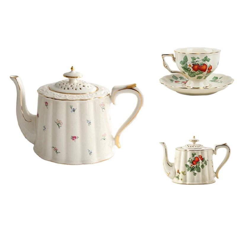 طقم فناجين قهوة وشاي فرنسي عتيق بحافة ذهبية وفنجان شاي كبير على شكل زهرة وفنجان شاي إنجليزي بعد الظهر