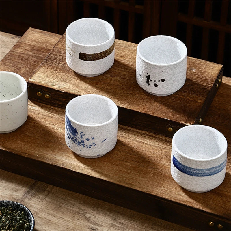 Aesthetic Japanese Ceramic Mugs Short Handy Water Cups Teacup Sushi Table Items Beauty Antique Art Drinkware Kitchen Utensils