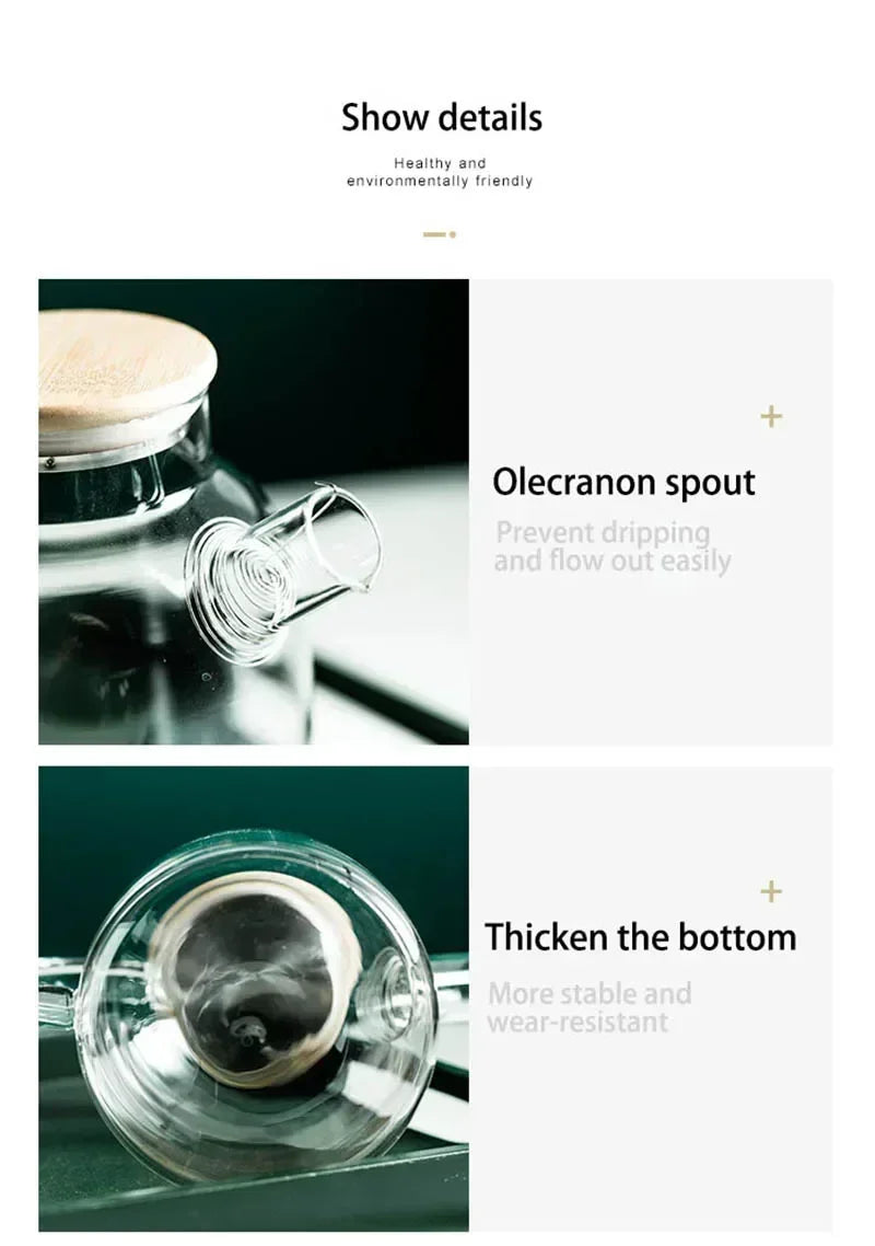 1.8L Transparent Borosilicate Glass Teapot Heat-Resistant Large Clear Tea Pot Flower Tea Set Puer Kettle Cup Office Home Tool