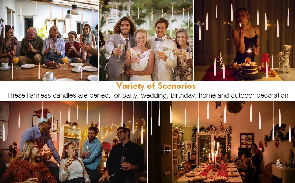You will receive LED candles with a cool magic wand remote that turns these flickering hanging candles on and off like magic.