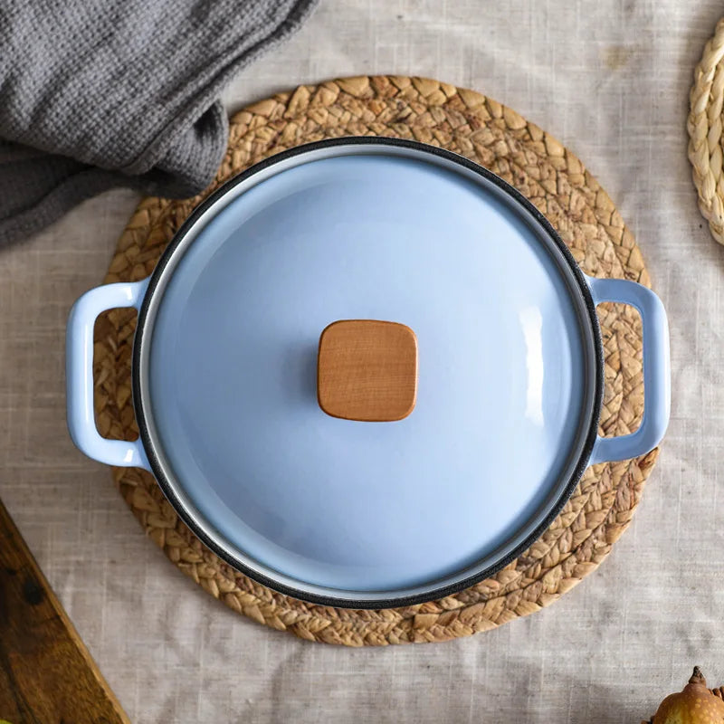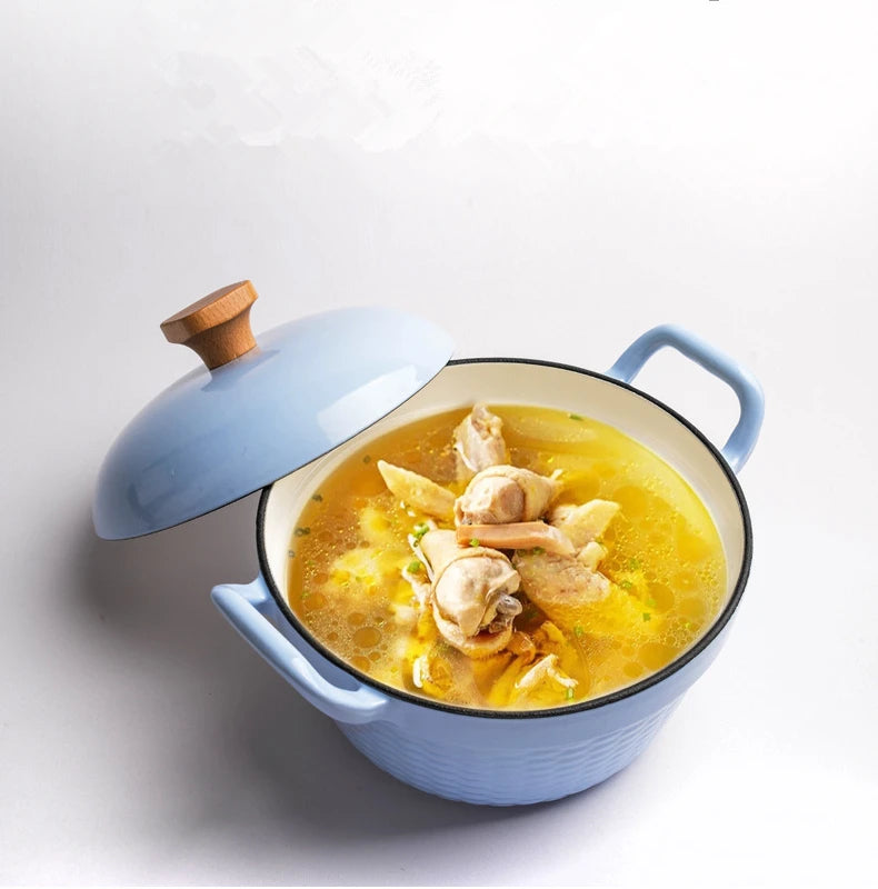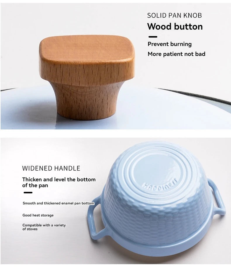 22cm Enameled Mini Cast Iron Dutch Oven For Cooking Stew Meat and Bread Baking Heavy type 2 L Cast Iron Casserole Dish Soup Pot