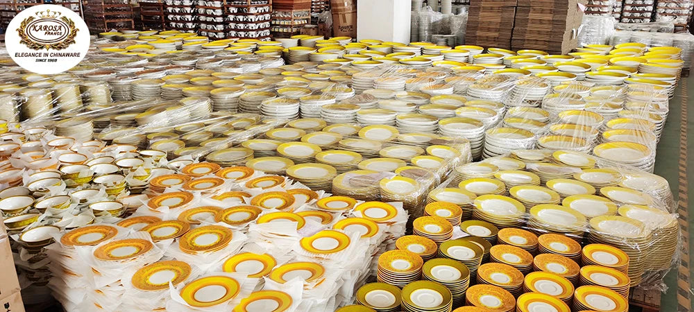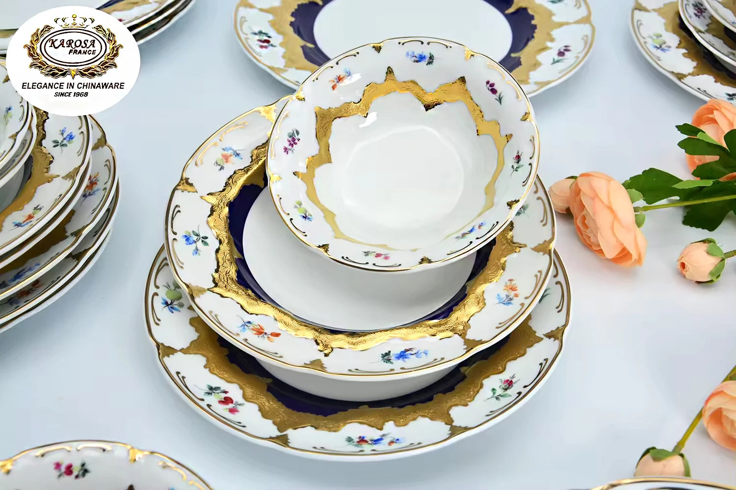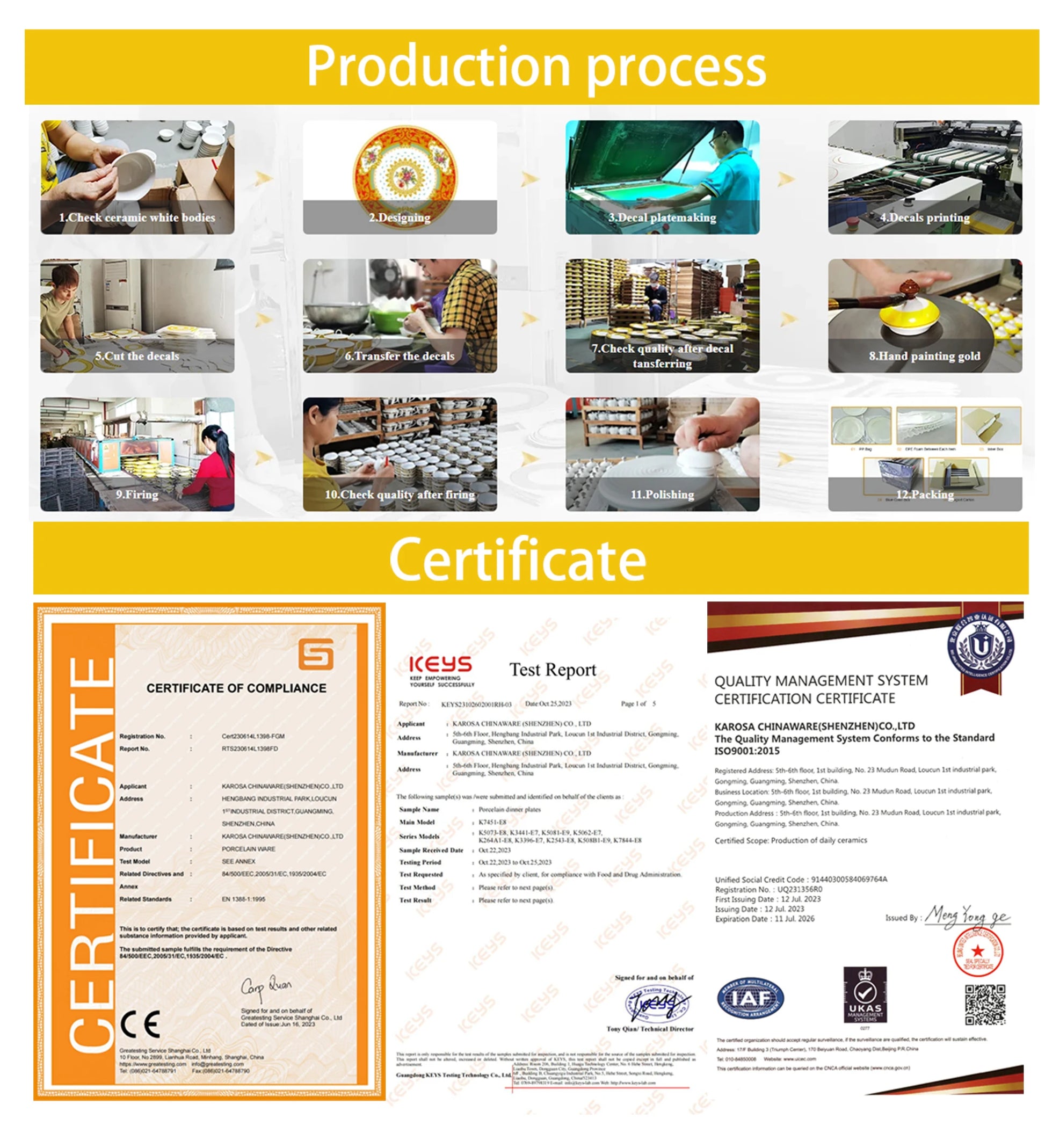 We build KAROSA brand name ,ensure quality standards are all the first class In the manufacturing, we apply the most advanced decal design. It can highlight the the figures around our dinnerware sets, thus attracting more attention. At the same time, through the high-end gold technology, the pure gold can be naturally attached to the dinnerware sets. Most importantly, our quality department have serious inspections on the whity body, semi-manufactured goods, and the finished goods to confirm that our products are harmless to human body, assuring people a safe and relieved dinner.