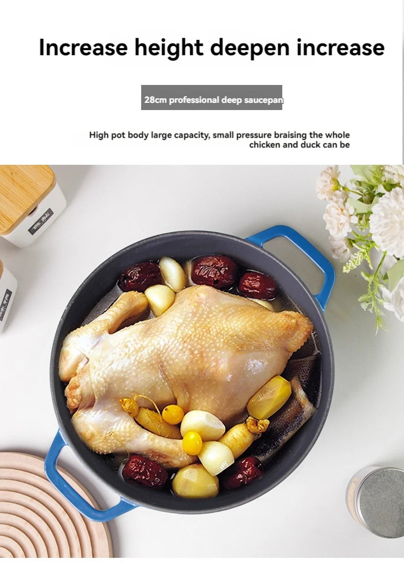 28cm Enameled Cast Iron Dutch Oven 6Qt Cast Iron Casserole Dish with Lid for Bread Baking And Stew Kitchen Cookware Braised Pot