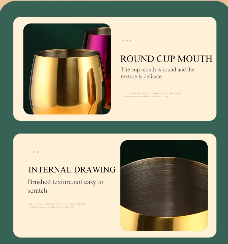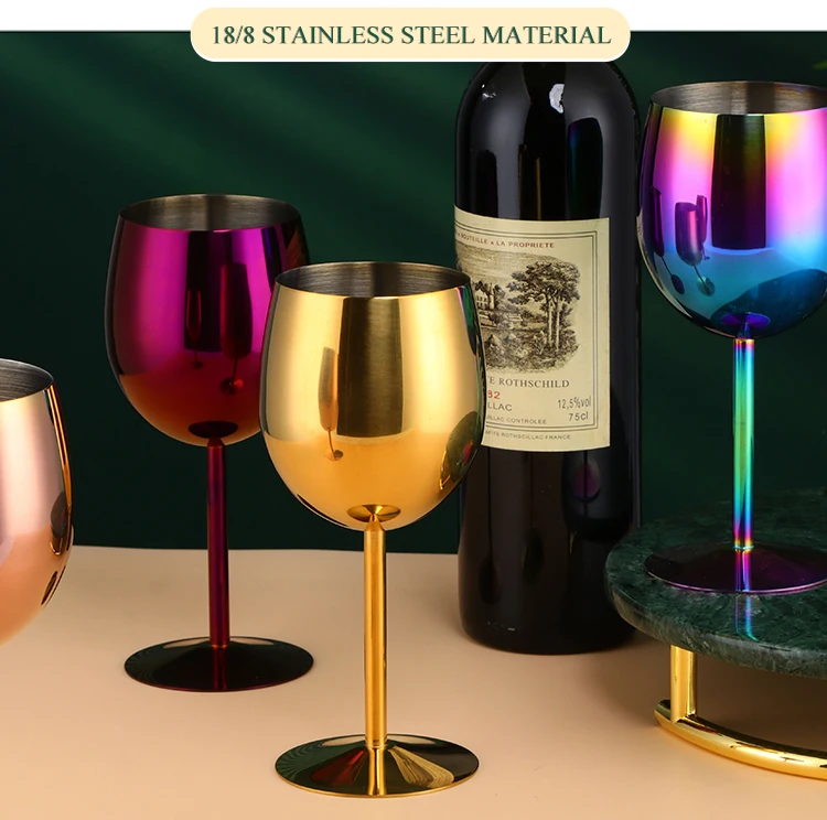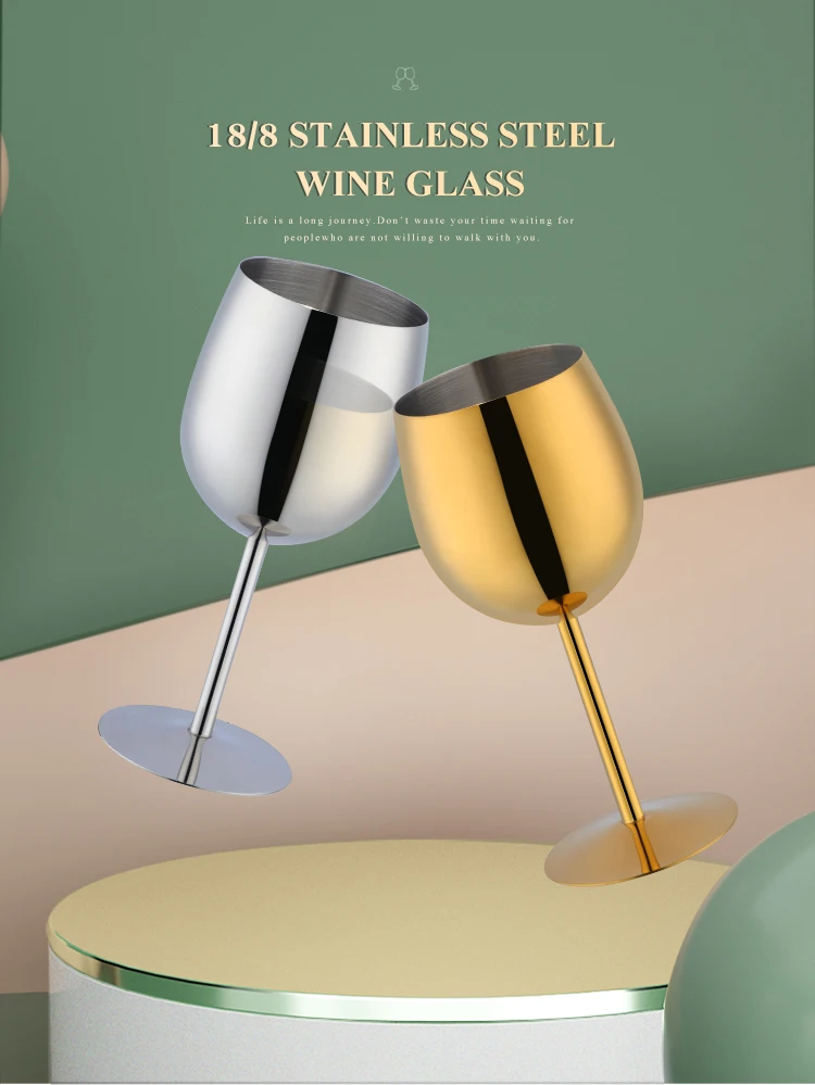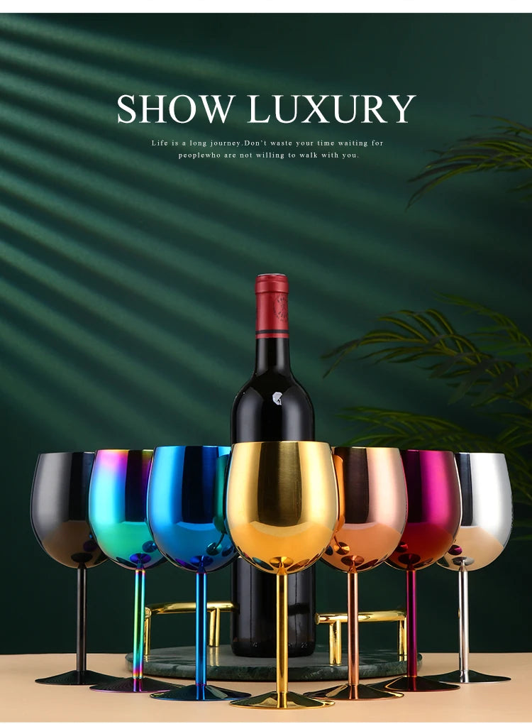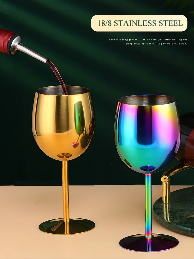 2PCS 350ml Wine Glass Stainless Steel Gold Goblet Champagne Cups Metal Juice Drinking Glass Luxury Barware Kitchen Tools
