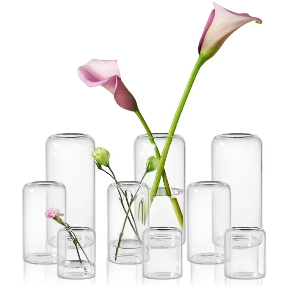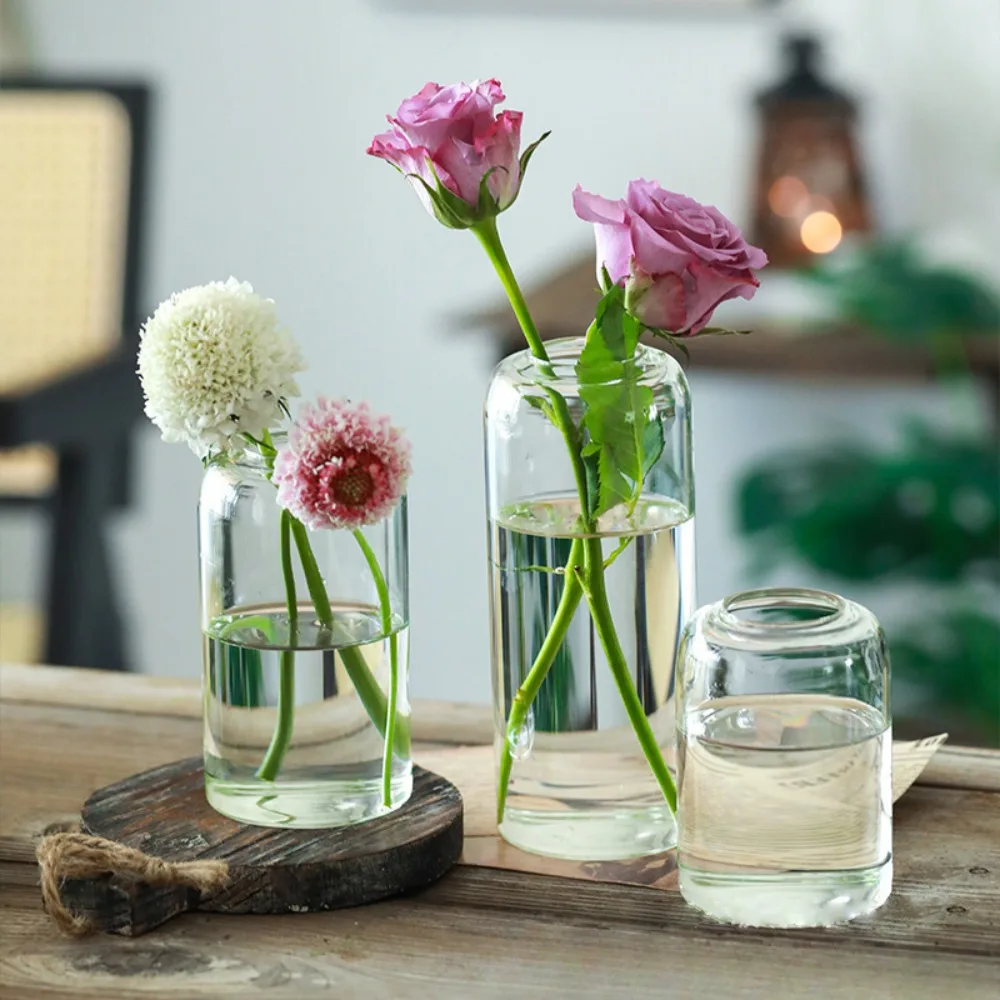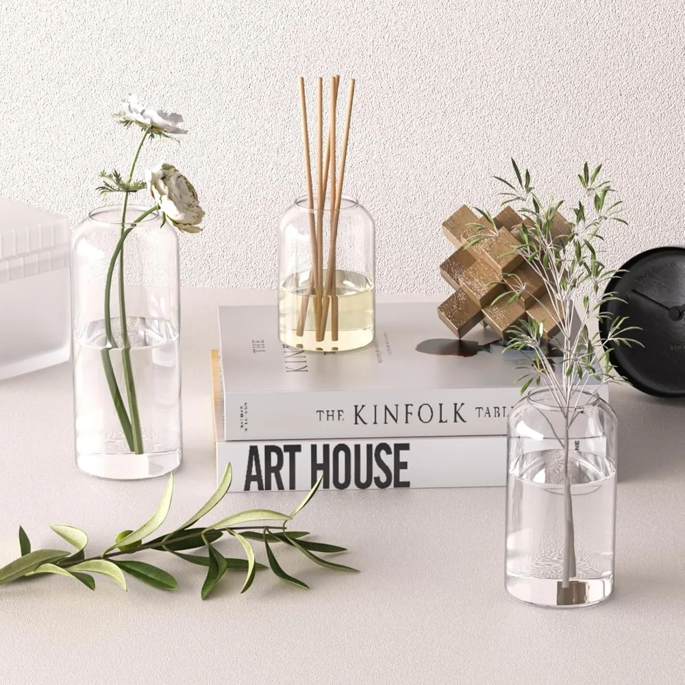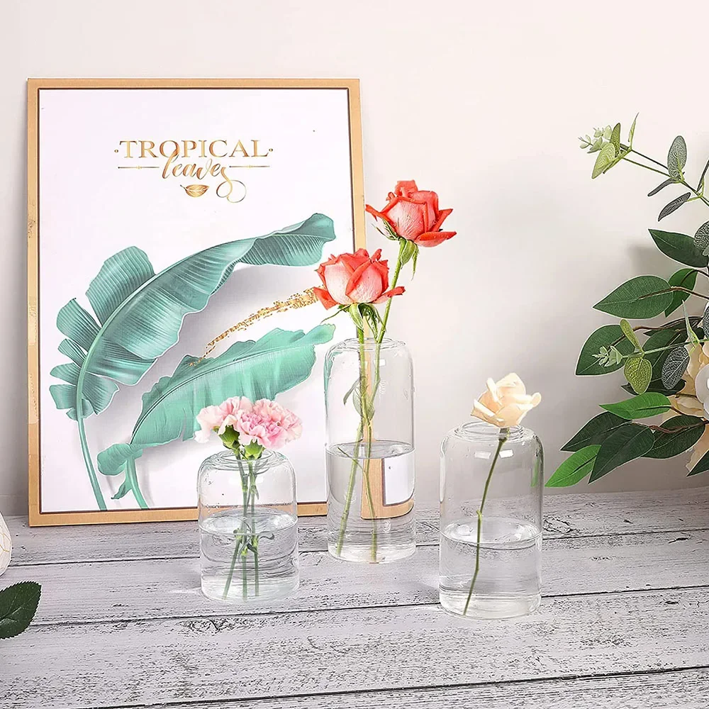 3Pcs/set Clear Small Glass Bud Vases in Bulk Modern Cylinder Glass Vase for Wedding Party Dining Table Centerpieces Decoration
