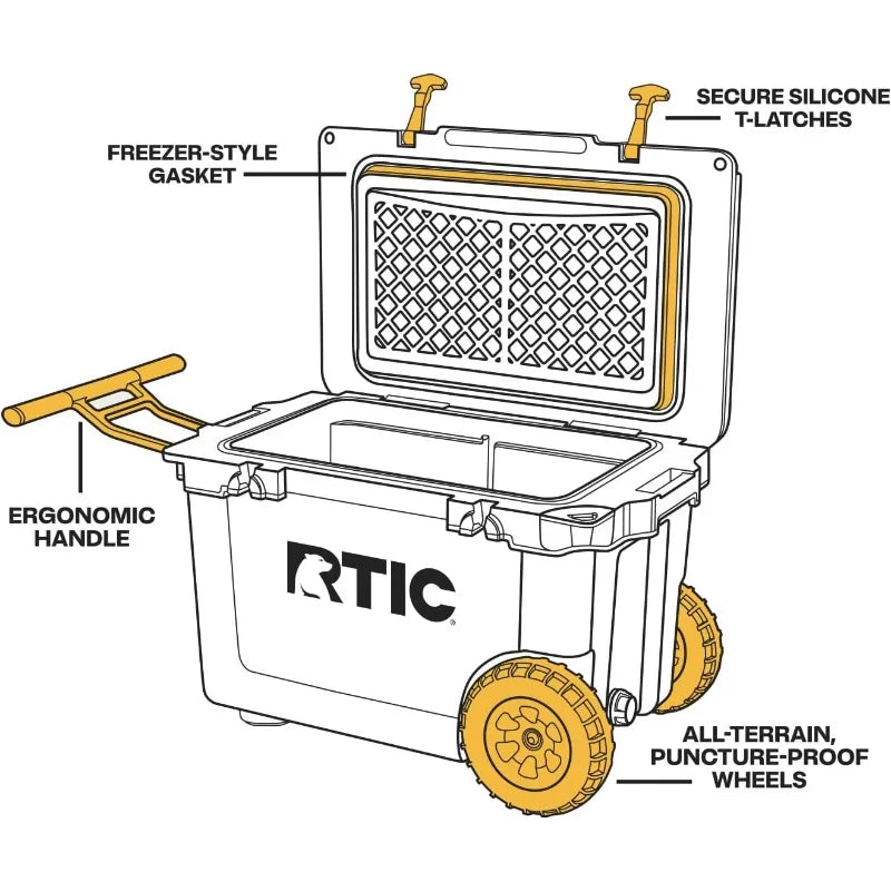 ALL-TERRAIN WHEELED COOLER – Venture into the great outdoors with confidence, equipped with the RTIC Ultra-Light insulated cooler with wheels, equipped with puncture-resistant, all-terrain wheels to effortlessly traverse through rough terrains.