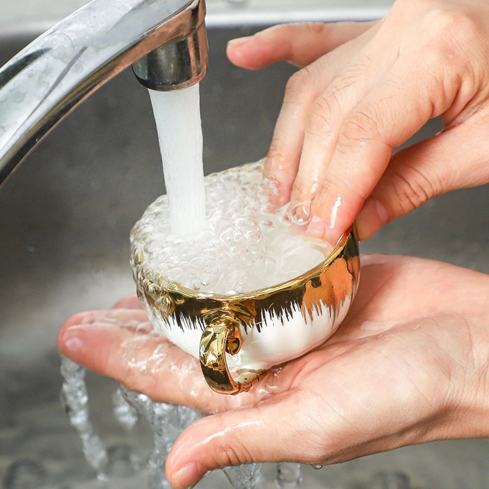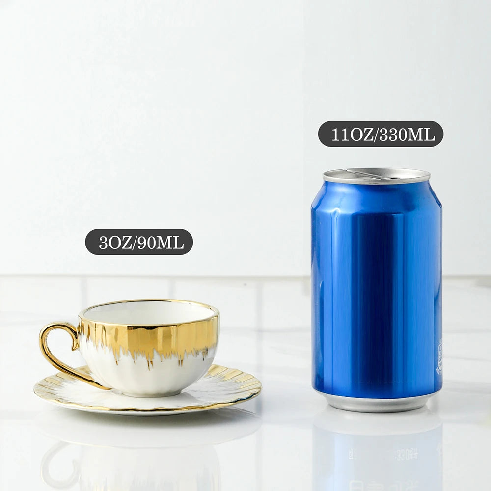 6 Sets, Ceramic Cups With Saucers, Espresso Cups and Saucers, Porcelain Coffee Cup and Saucer Set with Gold Trim, 2.5 oz Demitas