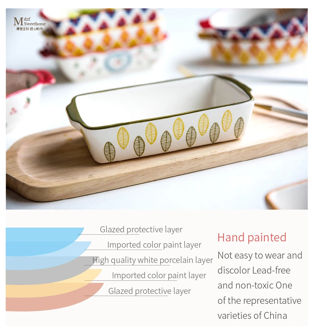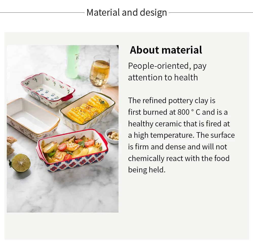 Ceramic Baking Dish Roasting Lasagna Pan Rectangular Dish Bakeware Pan With Handle Oven Kitchen Baking Tool