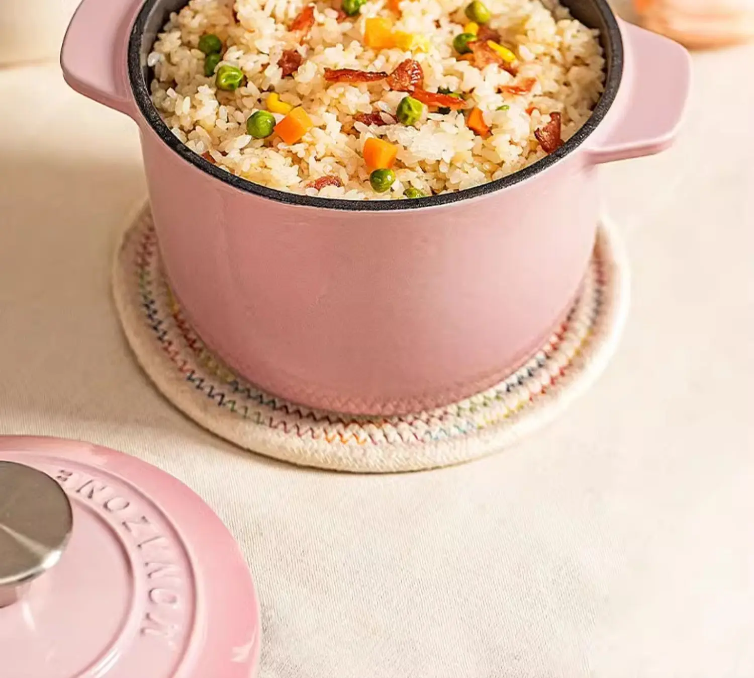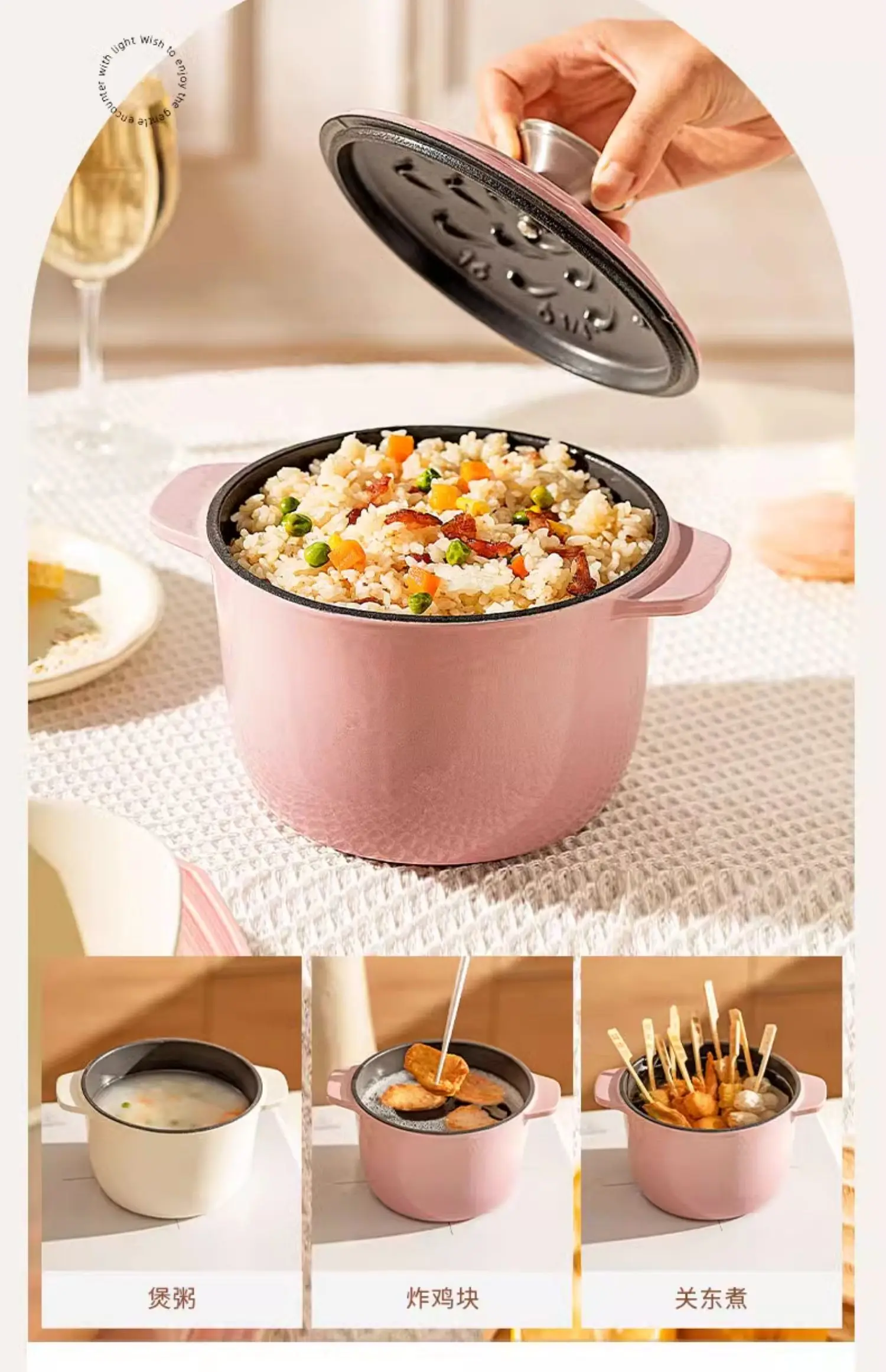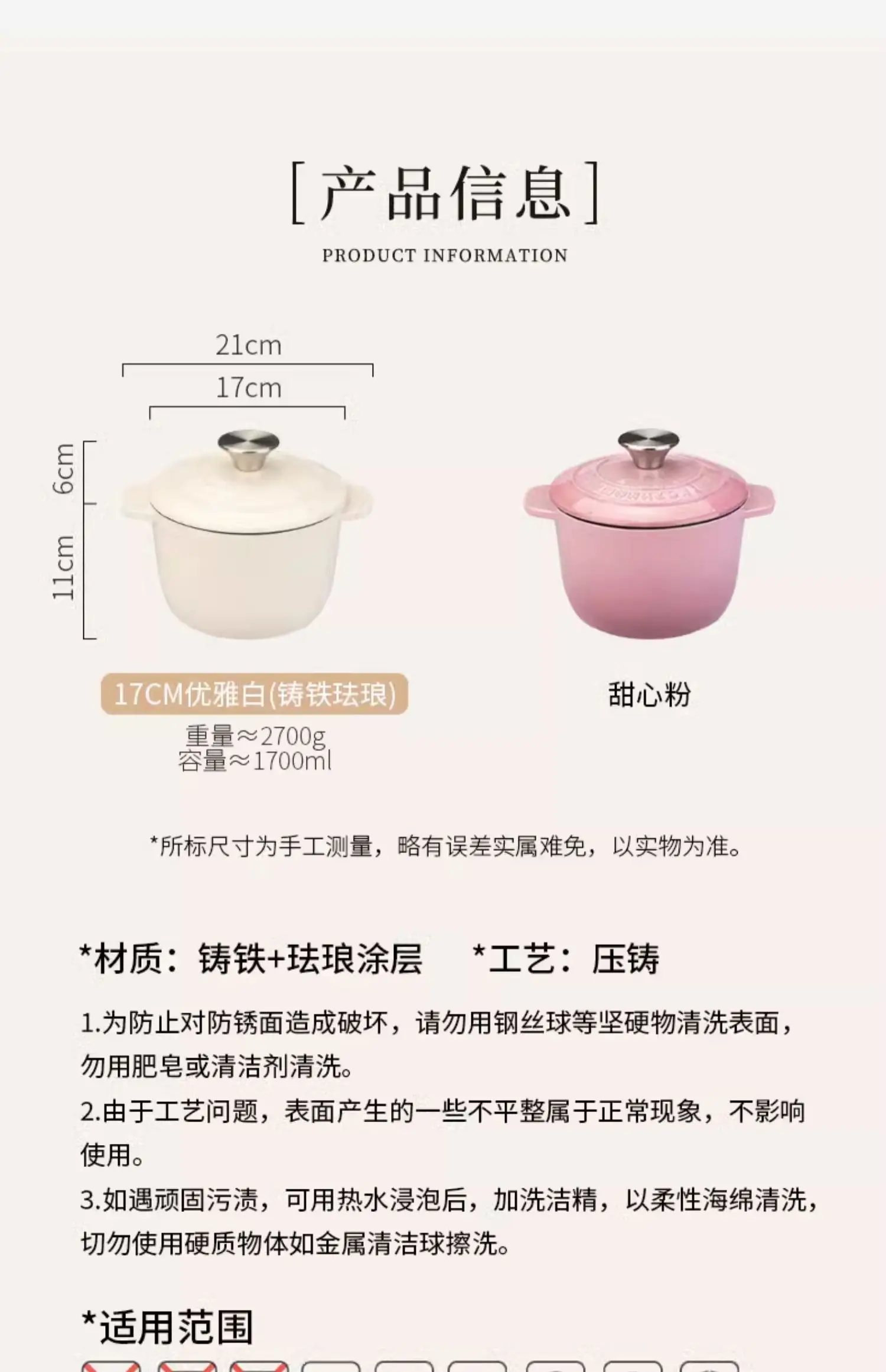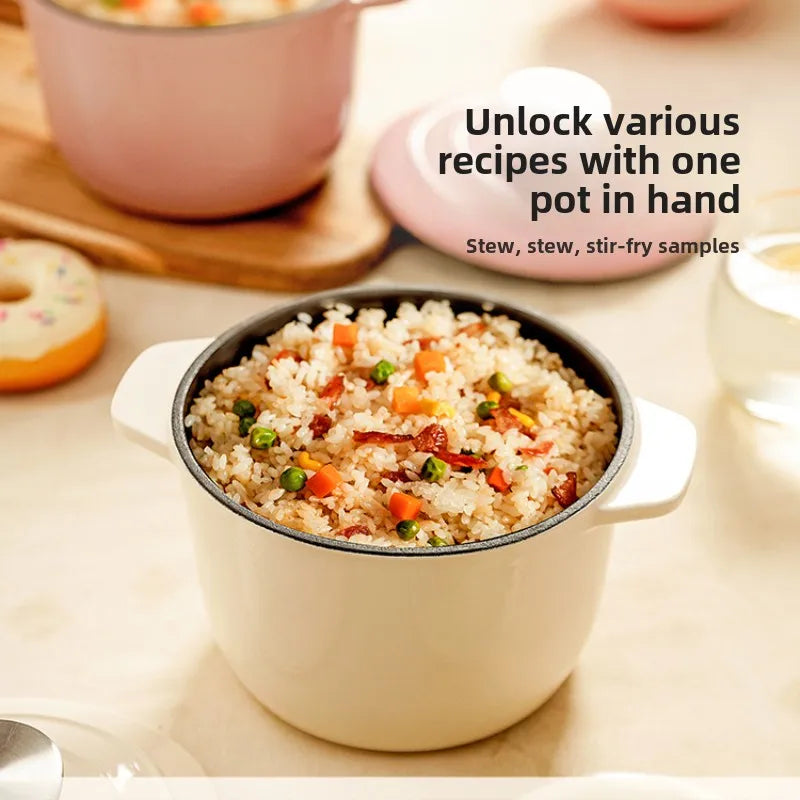 Enameled Mini Cast Iron Dutch Oven 1.7L for Cooking Bake Bread Cast Iron Pot Casserole Dish Heavy Milk Pot Pink Kitchen Stew Pot