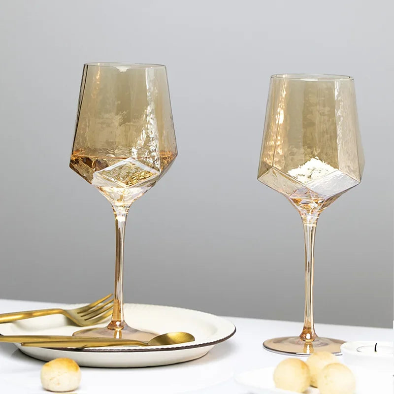 Toast to special moments with this stunning Nordic luxury champagne goblet. Featuring beautiful amber coloring, hammered diamond texture, and lead-free crystal glass construction, this elegant goblet elevates champagne, wine, and whisky service to an art form.