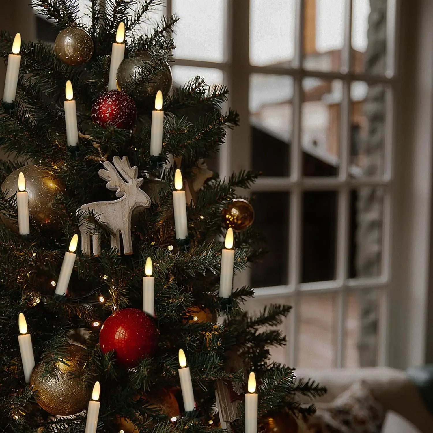 {Elegant Christmas Decoration}: Each led candle is topped with a black wick and an incredibly realistic flame. The warm white candlelight adds a lot of romantic holiday flavor to Christmas. You can use the included clip to easily clip the candle to the Christmas tree or wherever you want. Of course, the taper candle can also stand on the table or put it on the candlestick. It is an excellent choice for holiday decoration.