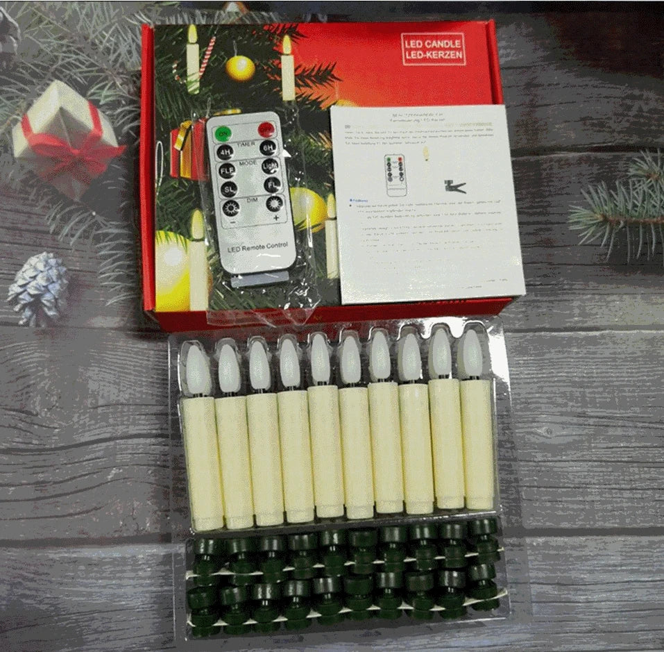 Pack of 10 LED Christmas Tree clip Candles Remote controlled w/Timer Battery Operated Flickering 3D wick Taper Candle Lighting