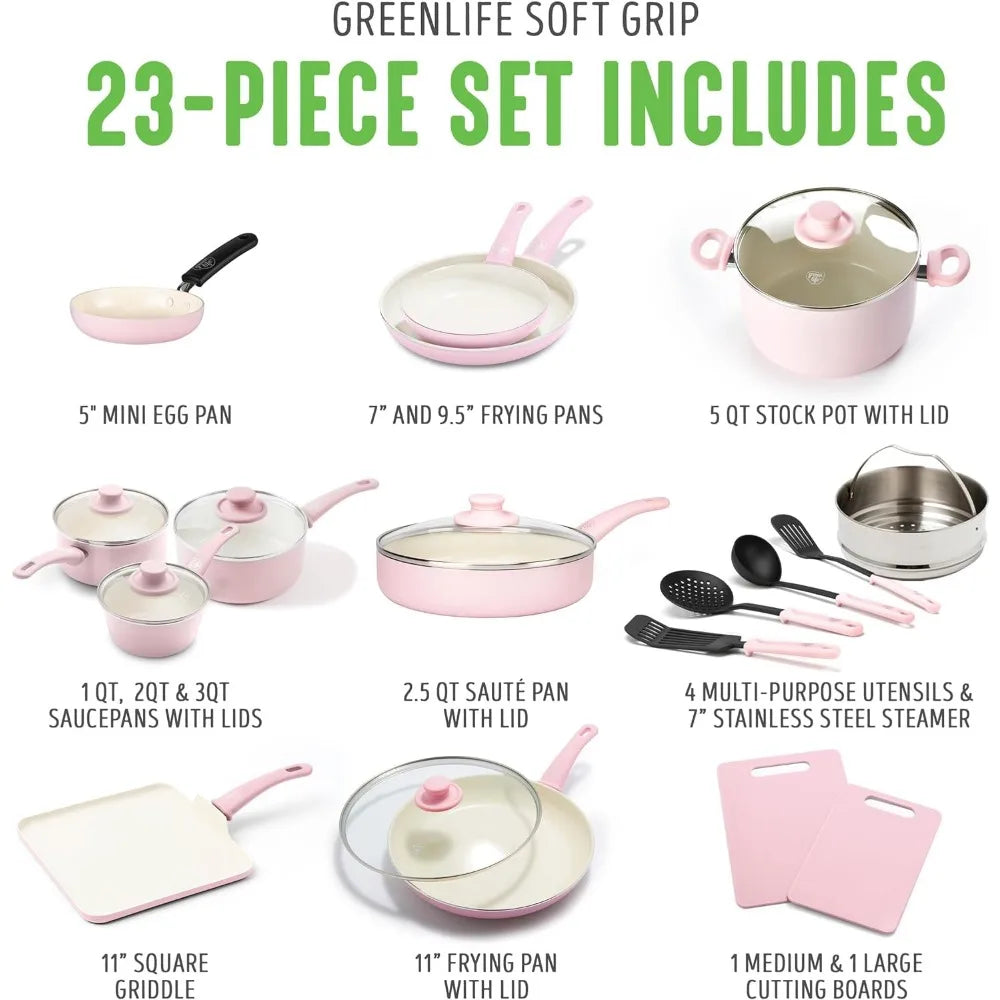 Complete 23-Piece Soft Grip Ceramic Nonstick Cookware Set with Utensils