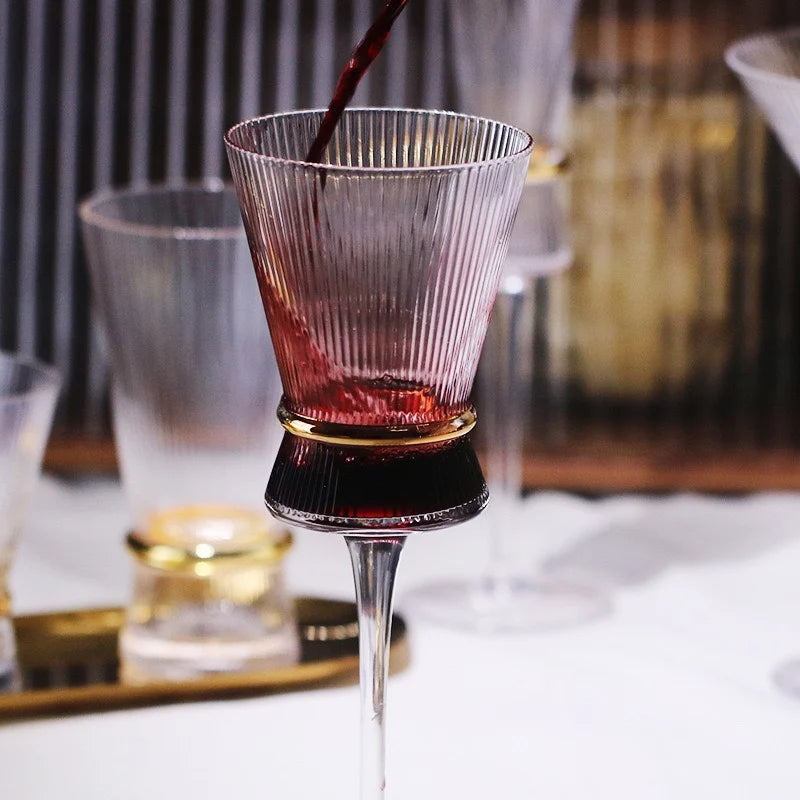 Gold Creative Vertical Gold Waist Line Goblet Champagne Glass Cocktail Glass Vertical Water Bottle Set Party Wedding Barware